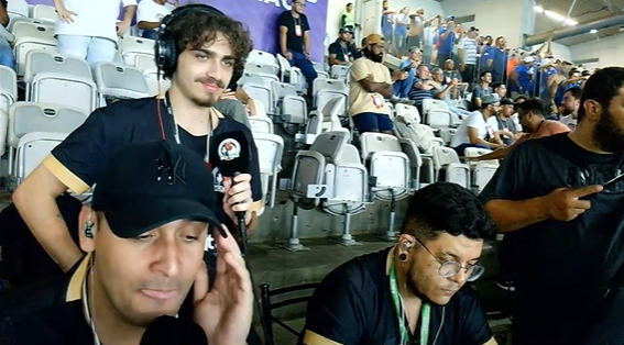 O veículo, que estava ocupando o espaço na tribuna de imprensa de forma profissional, foi constrangido e hostilizado ao vivo. Marco Geves relatou o incidente nas redes sociais com resgistros do ocorrido: